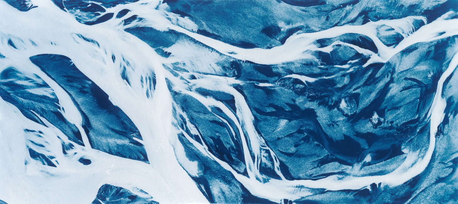 Le processus de tirage photochimique cyanotype (du grec kyanos qui signifie bleu) est un des procédés photographique les plus anciens.Il fut découvert en 1842 par le scientifique et astronome Anglais Sir John Frederick Herschel.A l'époque, le bleu profond caractéristique du cyanotype le rendait peu usuel, il était alors inacceptable de présenter un paysage ou un portrait avec cette technique.
